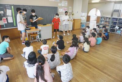 課題を終えた子は、タブレットを利用した調べ学習の補充や練習問題の取り組み、プログラミング学習の強化など、2学期の学習を見据えた発展的学習に取り組んでいます。