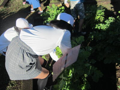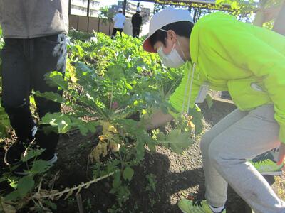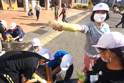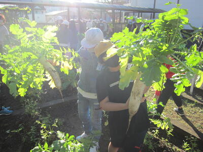 6年生が、うんとこしょっ!!どっこいしょっ!!と大根を抜いていきました。