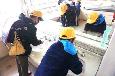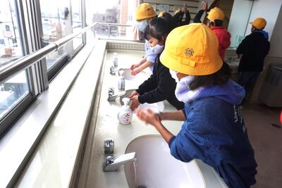 登校後や休み時間等で外に出た後などは、しっかりと手洗いを行うよう、声掛けもしています。
