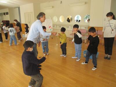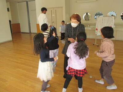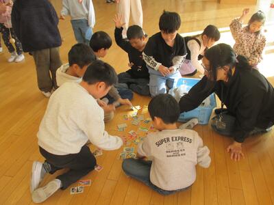 はじき遊びを、グループに分かれ交代交代で楽しみました。子供たちは夢