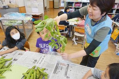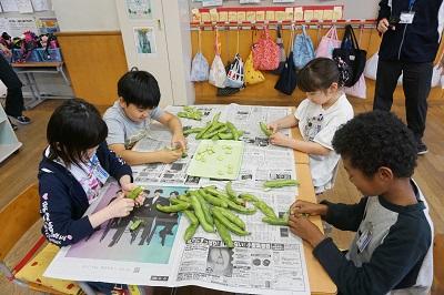 3年生、そら豆のさやむきにチャレンジ!! 投稿日時 : 2019/05/21 武里西小 カテゴリ: 本日、食育の体験活動の一環として、3年生を対象としたそら豆のやさむきが行われました。そら豆の成長ぶりにビックリ!!3年生の頑張りで今日の給食のおかずが増える!!と一生懸命にさやむきをする3年生。あっという間にむき終えました!!無事に給食のおかずになることができました!! {{options.likeCount}} {{options.likeCount}}