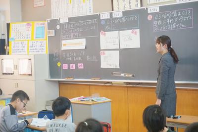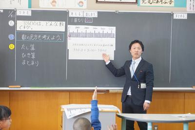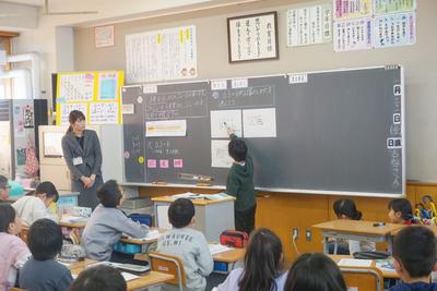 午後は、4年2組にて「小数のかけ算とわり算を考えよう」の研究授業を行いました。