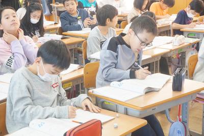 武里西小学校では、今年度から『自らの考えを互いに伝え合い、よりよい自己表現ができる児童の育成~数学的な見方・考え方ができる授業の工夫~』を研究主題として算数科の研究を行っています。