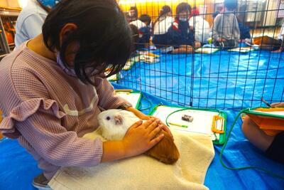 「可愛い~!!」と思わず声に出す子供たち。動物たちを優しく愛でながら、動物への関心を深めていきました。