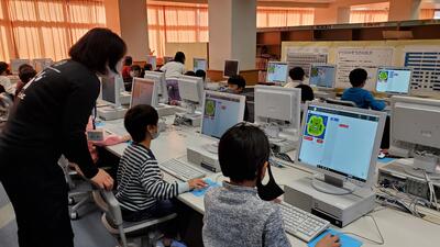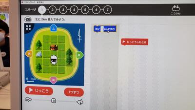 3年生がプログラミングを学びながらゲームをクリアしていきます。