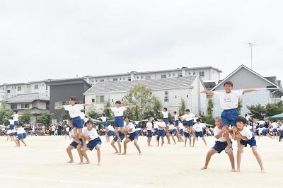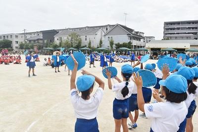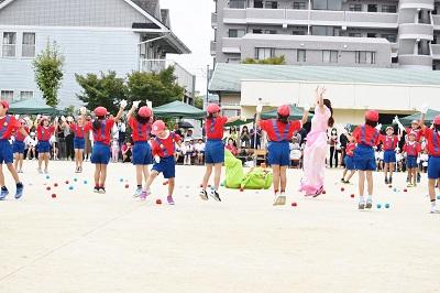 午前中は、小雨が降る中での開催でしたが、団体演技のダンスが始まる頃には段々と晴れてきて、最後まで予定通り演目を終えることができました。