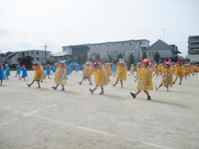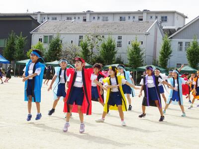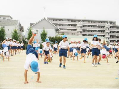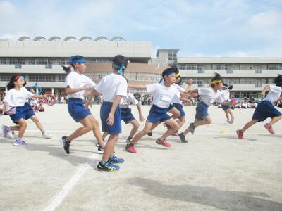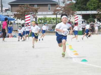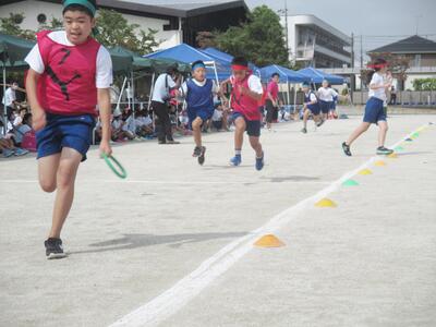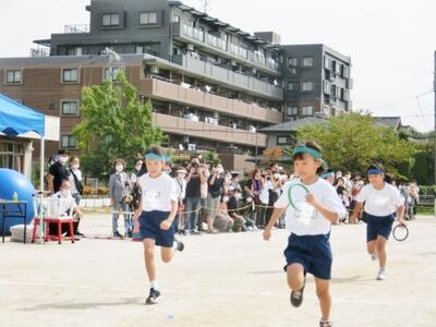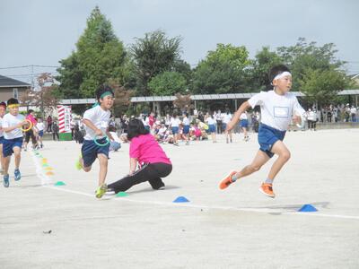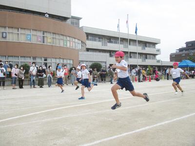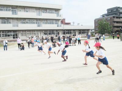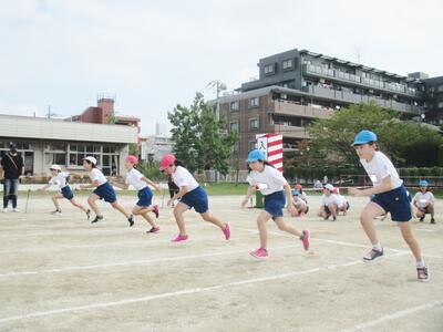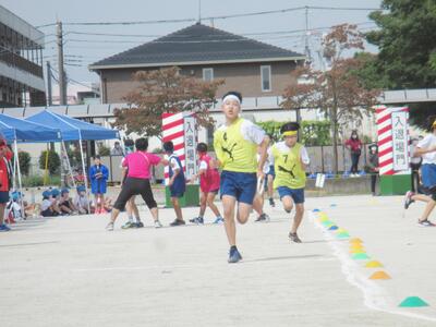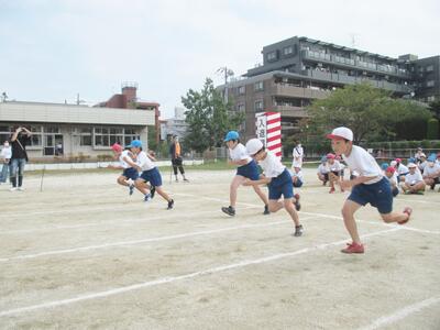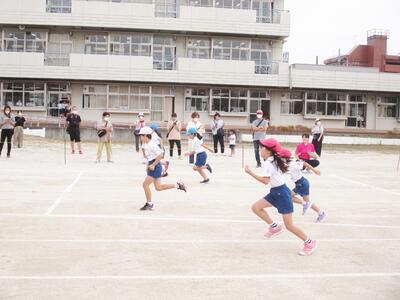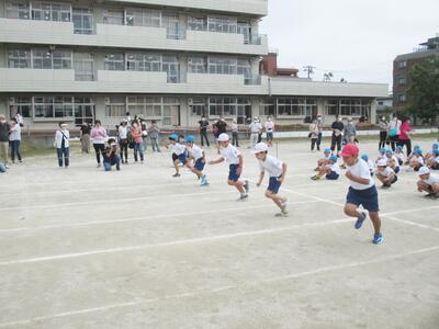 今回の徒競走では、密集や密接を避けるためにそれぞれのコースの幅や待機場所を例年より広めに設定してあります。