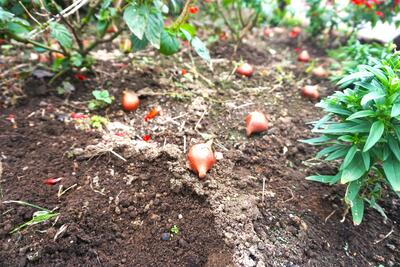 緑化委員会では、春に咲くチューリップの球根を植えました。