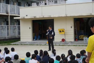 校長先生のお話では、武西の卒業生が海外で地震にあったときのテーブルの下に隠れるなどの第一次行動の素早い対応に海外の人たちが驚いたという逸話を校長先生が話してくださいました。