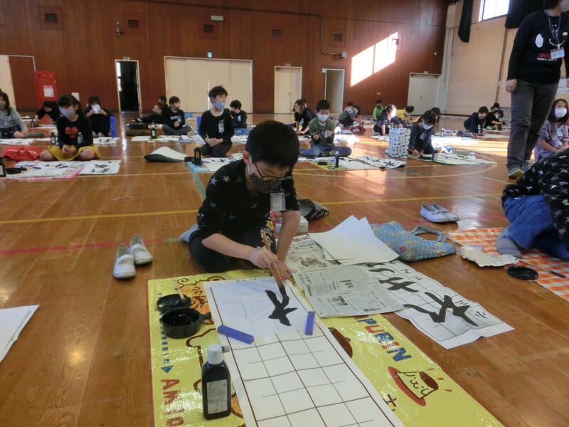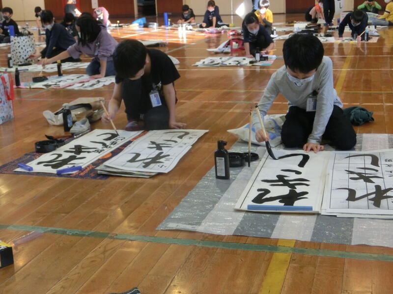 書写の時間に半紙に書くのと画仙紙(書きぞめ用の大きい紙)に書くのでは雲泥の差があるようで、四苦八苦している様子が多く見られました。11月末の競書会に向けて、これから練習を重ねていきます。