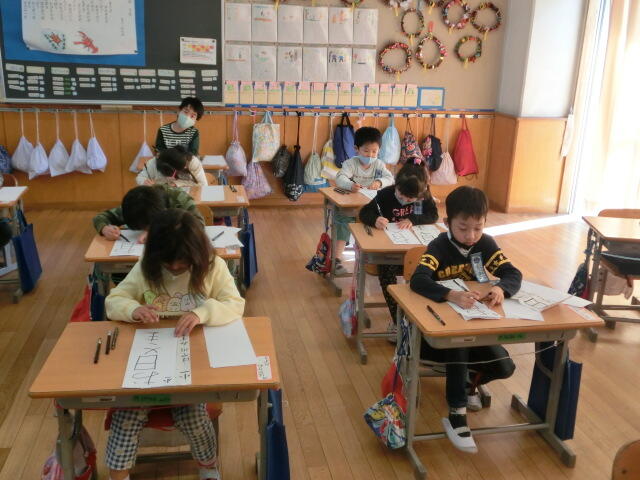 2年生もフェルトペンで挑戦です。「春よ来い」に挑戦しました。漢字が増えましたが、どの子も丁寧に書いていました。