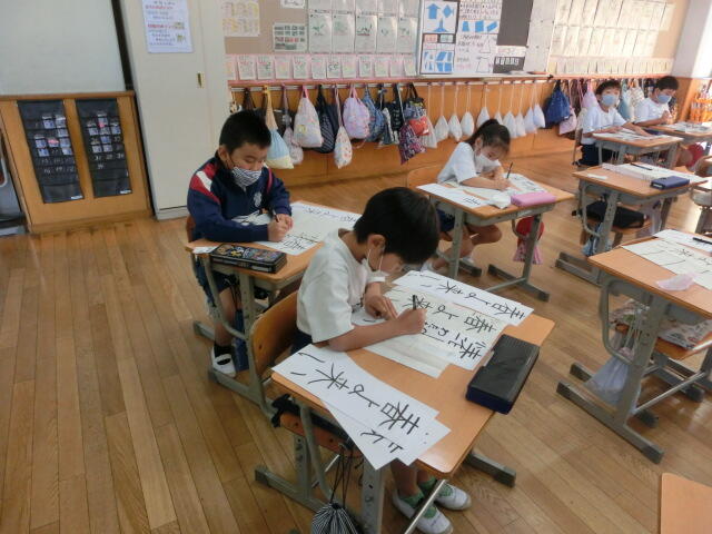 初めて太い筆で挑戦した3年生。練習する度に上手になっていく様子が見られました。