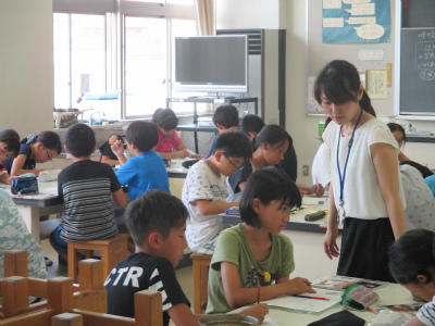 事前に申し込みがあった児童対象に、夏休みの課題やプリント等で、基礎・基本の学習を行っています。