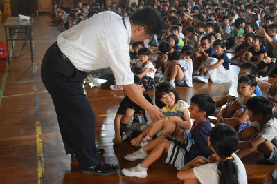 夏休みを安心・安全に過ごすための3つの約束ということで、「子供たちだけで学区外に行かない」「遊び方に気をつける(お金や遊びのルールを守る)」「1学期を振り返る」というお話でした。