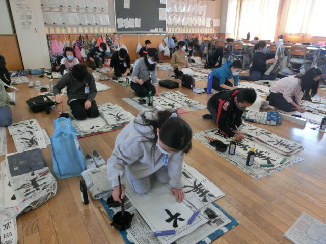 初めて太い筆で挑戦した3年生。練習する度に上手になっていく様子が見られました。