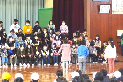 教室から見る子供たちも楽しそうに発表の様子を見つめます。