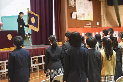 特別活動、代表委員会担当の先生からもお話があり、この一年間に渡る活動の総括と、学校の代表として活躍してきた皆さんへの労い、この経験を生かして来年度も頑張って欲しいという激励がありました。