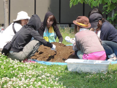 暑い中、PTAのガーデニングボランティアの方が来て下さって、校庭の花壇のお花を植え替えてくださいました。かわいいベコニアの花を大事にします。