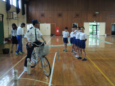 6月28日(日)の熊谷ドームで行われる埼玉県自転車大会に出場するために6年生の5名が練習をしています。警察・市役所の方に指導をいただいています。少しずつ上手になっています。