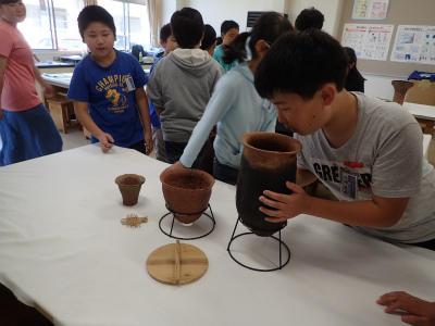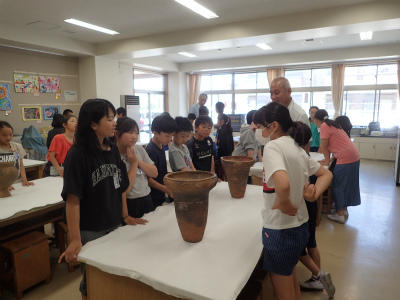 6年生の武西っ子も実際に土器に触れながら、古代からのメッセージに思いを馳せ、思わず、胸がドキドキ…。