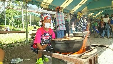 釜戸、お米、調理担当で説明を受けています!