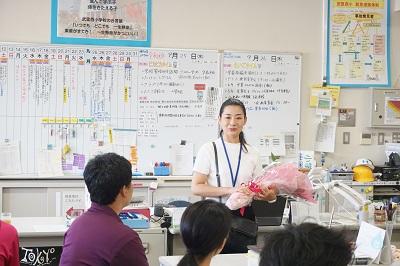 先日、年度途中から赴任された先生に鉢花が贈呈されました。