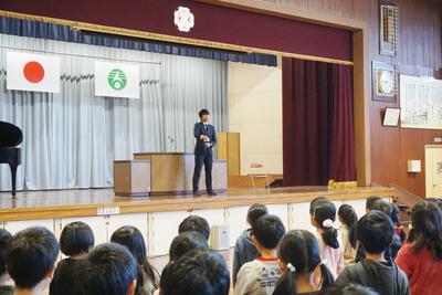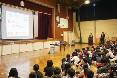 校長先生のお話では、2学期の「あ・い・う・え・お・か」について、お話があり、あいさつチャレンジカードの結果発表や、各学年の頑張った活動について、映像とともに紹介されました。