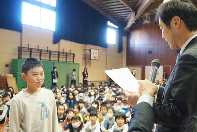 今回の受賞者は、2年生の頃から欠かさず、朝の階段掃除を行った3年生の男子児童です。