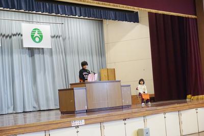 1年生と4年生の代表児童による作文発表も行われ、2学期がんばったことを話しました。