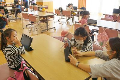 各自が持参した自習課題を行ったり、ビデオを鑑賞したりしながら過ごす子供たち。