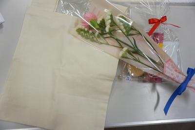 そして、6年生の児童や保護者の皆様から「お世話になりました。」とバッグやお花等のプレゼントをいただきました。
