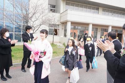 卒業生の保護者の皆様におかれましては、感染拡大防止の観点から、会場外での御対応に御理解、御協力いただき、ありがとうございました。