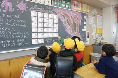 登校した子供たちも、教室に入るなり、「お~!」と黒板を見ていました。