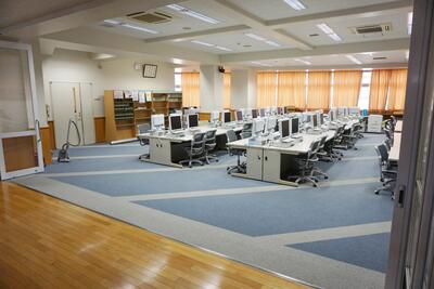 図書室とコンピューター室が統合されているマルチメディアルームとして武里西小の特色でも紹介されていますが、扉の壁を開けているととても広く感じます。