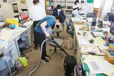 29日(金)は、6月1日(月)からの再開に向けて、職員室の掃除も行われました。