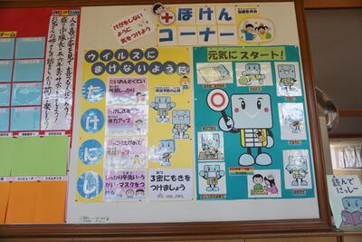 ほけんコーナーもウィルスに負けないお知らせ模様になっていました。