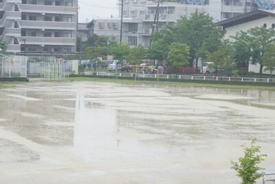 雨が続き、校庭にもすっかり大きな水たまり。それを見た1年生が「校庭がまるで鏡みたい」と一言。
