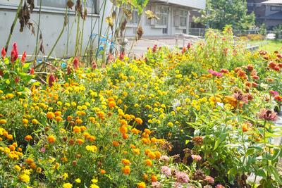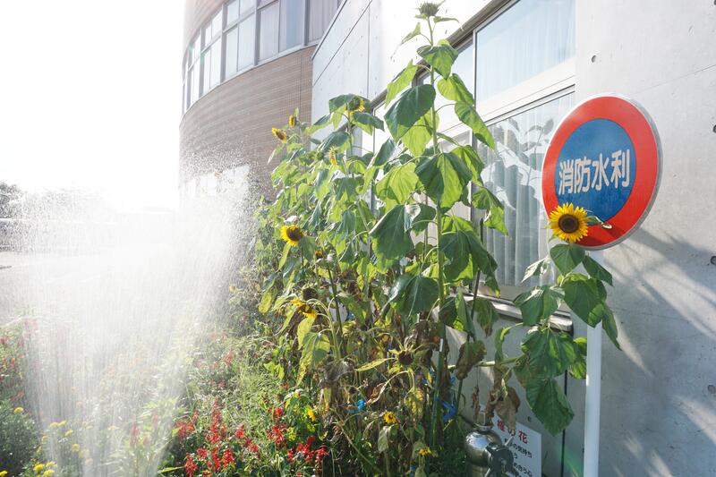 以前から多数の保護者や地域の皆様が自主的に花壇の整備や水やりを行ってくださっているそうで、この日も花々を心配して水やりをしに来てくださったそうです。