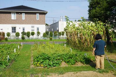 この梅雨で伸び切った学級園の雑草を校務員さんがきれいにしてくれました。