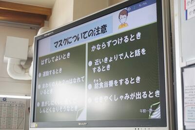始業式後、2学期における新型コロナ感染症拡大防止の対応について映像を交えながらお話がありました。