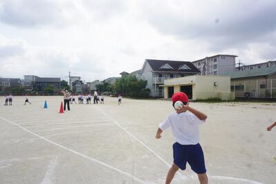 1年生は、初めてのボール投げ。上手く投げることが出来ると喜ぶ姿や、みんなでボールを追いかける姿は、暑さの中でもほのぼのした可愛らしさを感じます。