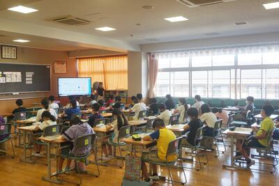 校長先生のお話では、例年とは違う異例の夏休みの中で感じた和みを感じさせる話題とともに、アメリカのメジャーリーグのロサンゼルス・エンゼルスで活躍している大谷翔平選手にまつわる話がありました。