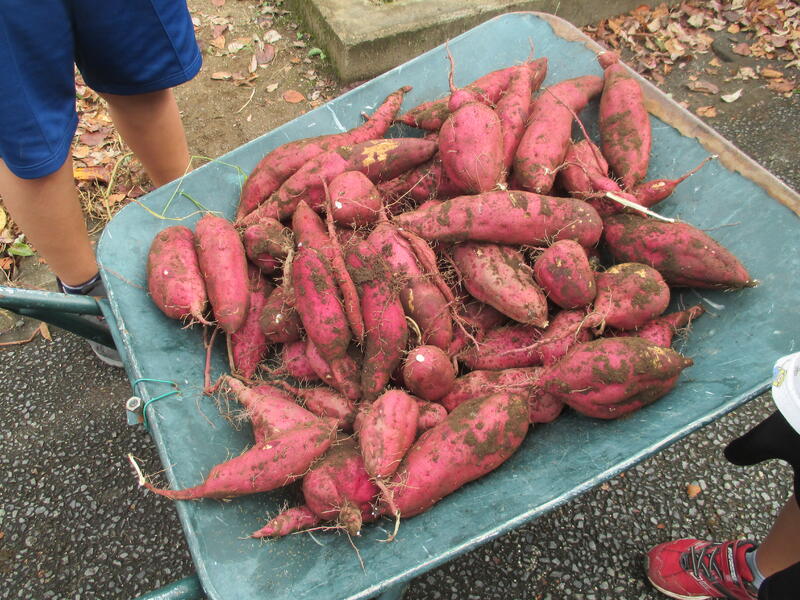10月3日(土)9時から10時の間、正門前で4,5,6組の児童が武西の畑で育てた