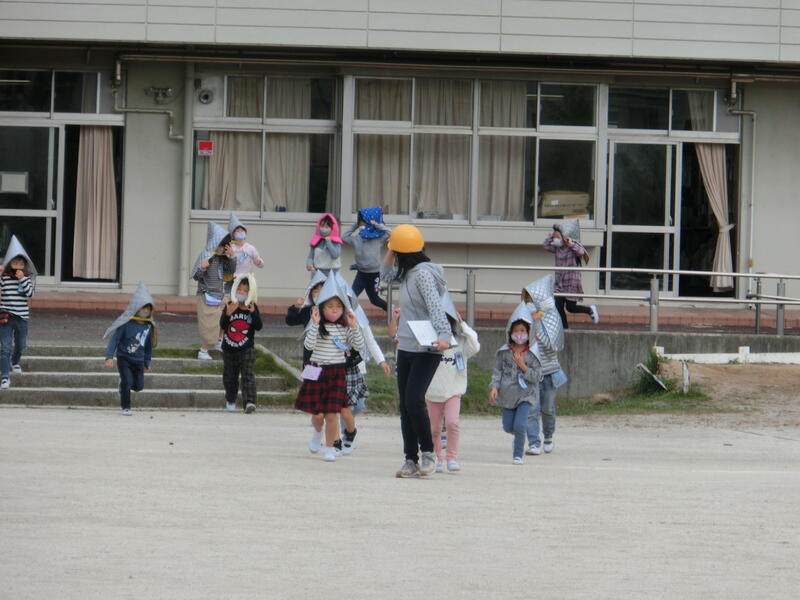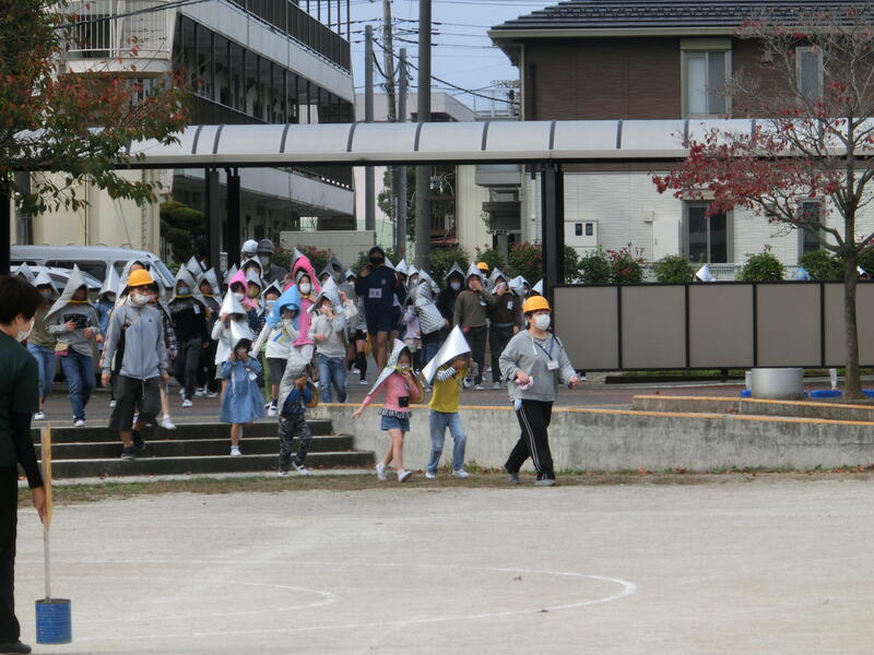 火災発生場所を避け、迅速に校庭へ避難をする様子が見られました。