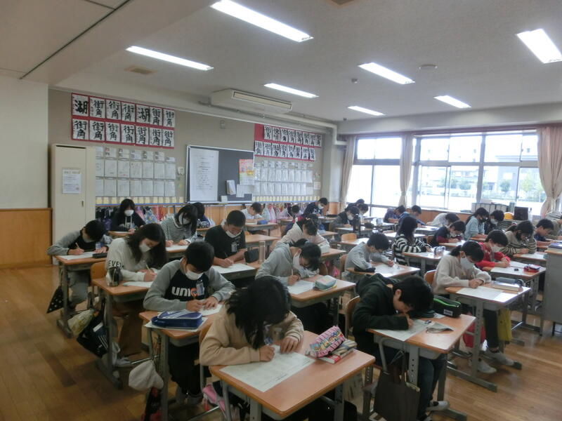 「はじめ!」の放送が入ると、集中して問題に取り組んでいます。