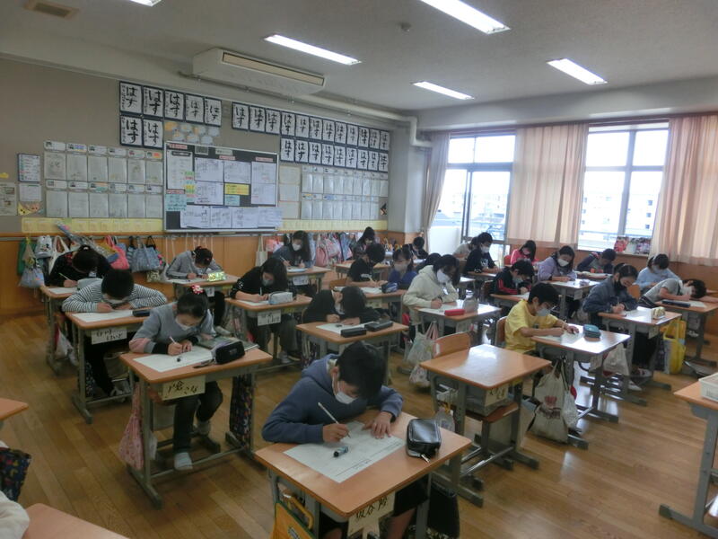 書写の時間に半紙に書くのと画仙紙(書きぞめ用の大きい紙)に書くのでは雲泥の差があるようで、四苦八苦している様子が多く見られました。11月末の競書会に向けて、これから練習を重ねていきます。