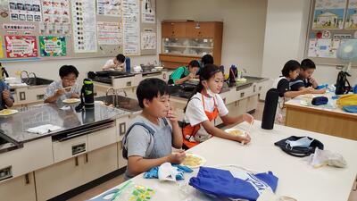 いよいよ子供たちも調理に入りました。食材は共有がないよう配慮しながらの実習です。