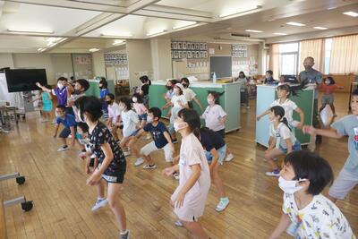 休み時間、音楽がかかると一心不乱に踊り出す子供たち。「踊る阿呆に見る阿呆。同じ阿呆なら踊らにゃ損々。」とばかりにあっという間に踊りたい希望者で賑わいを見せています。