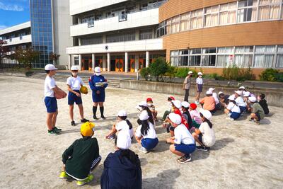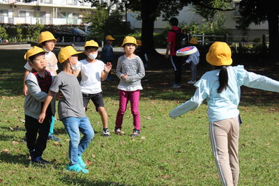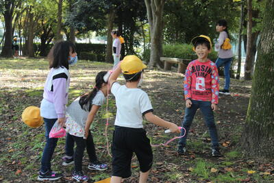 コロナ禍以降、交通公共機関を利用しての低学年の校外学習が難しい中、徒歩圏内の大型公園に合同で出かけています。