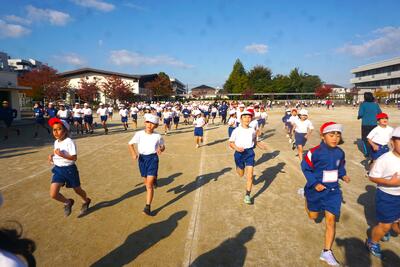先生たちも一緒に走ったり、安全確保や体調不良者を見つけやすいようにコース際を逆走したりしながら、子供たちと一緒に体力づくりを行いました。